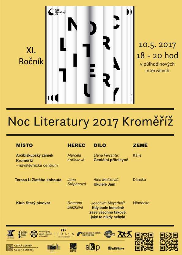 Noc literatury je oblíbený celoevropský projekt, kdy je návštěvníkům představována netradičním způsobem současná evropská literatura. Letos je naplánována na 10. května.