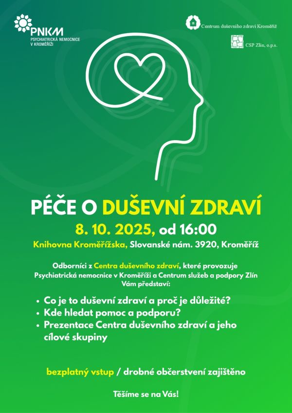 8.10. v 16.00 hod. se koná přednáška o duševním zdraví. Výpadek elektřiny bude do 16:00 hod. Přijďte na přednášku.